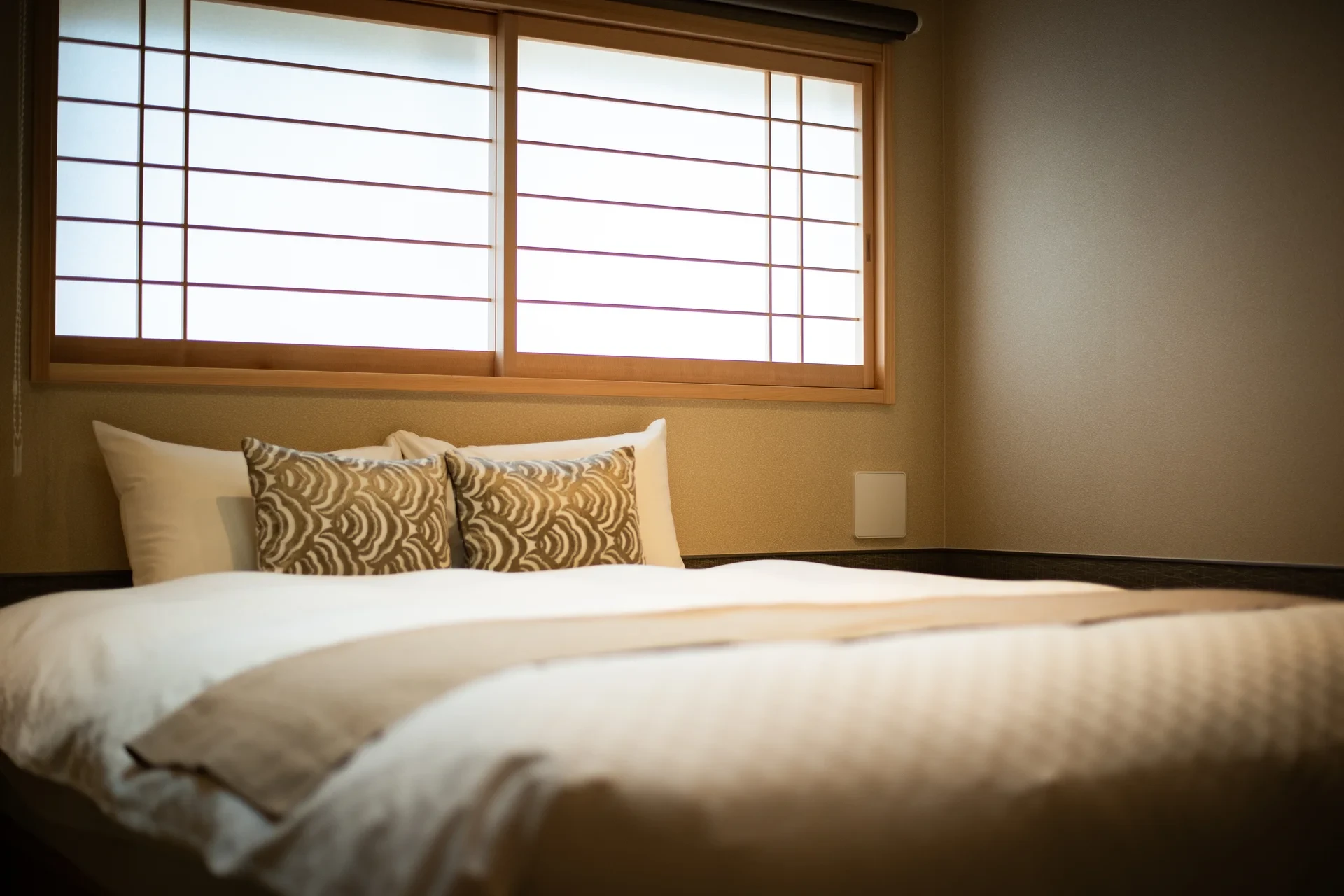 京都・高瀬川沿いに佇む一棟貸し宿にて、内装コンセプトの立案から内装仕上材、家具・照明計画まで一貫して担当。